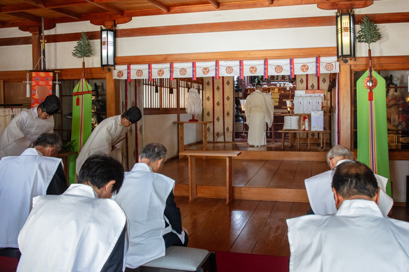年の始めにあたり、皇室の弥栄と国の平和、地域の発展、氏子崇敬者の幸せを祈る祭典です。氏子総代、奉賛会会長、宮委員が参列されます。