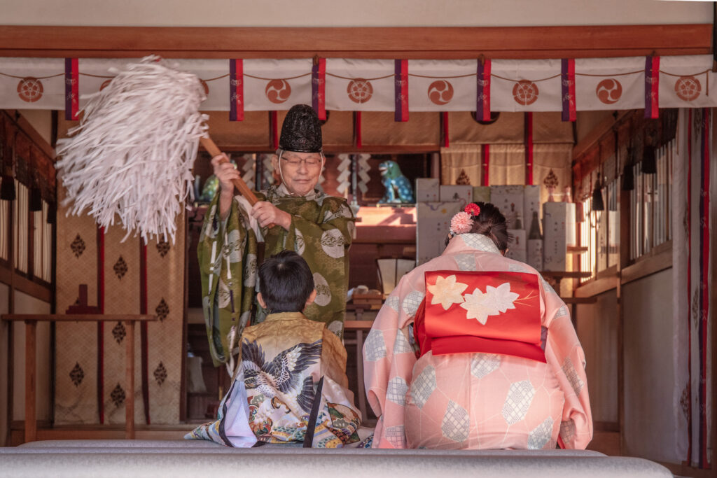 お一組様ずつ拝殿においてご祈祷を受けていただきます。
