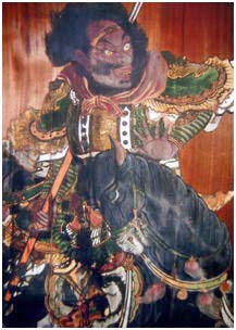 庄屋「わしも、蔵人の庄屋はんも「三度のメシより三国志」ちゅうくらい三国志好きや。三国志で「義」に篤い一対の人物云うたら、関羽と張飛や。この二人をそれぞれの村で絵に描いてもらお、ちゅうことに決めましたんや。」