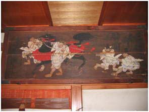 庄屋「馬はありふれてるさかい、おもろないな。永いこと残るのやから、何んかええ絵(えー)ないかな。蔵人の稲荷さんと合わさなならんので、両方につながりのある絵がほしいなあ。」